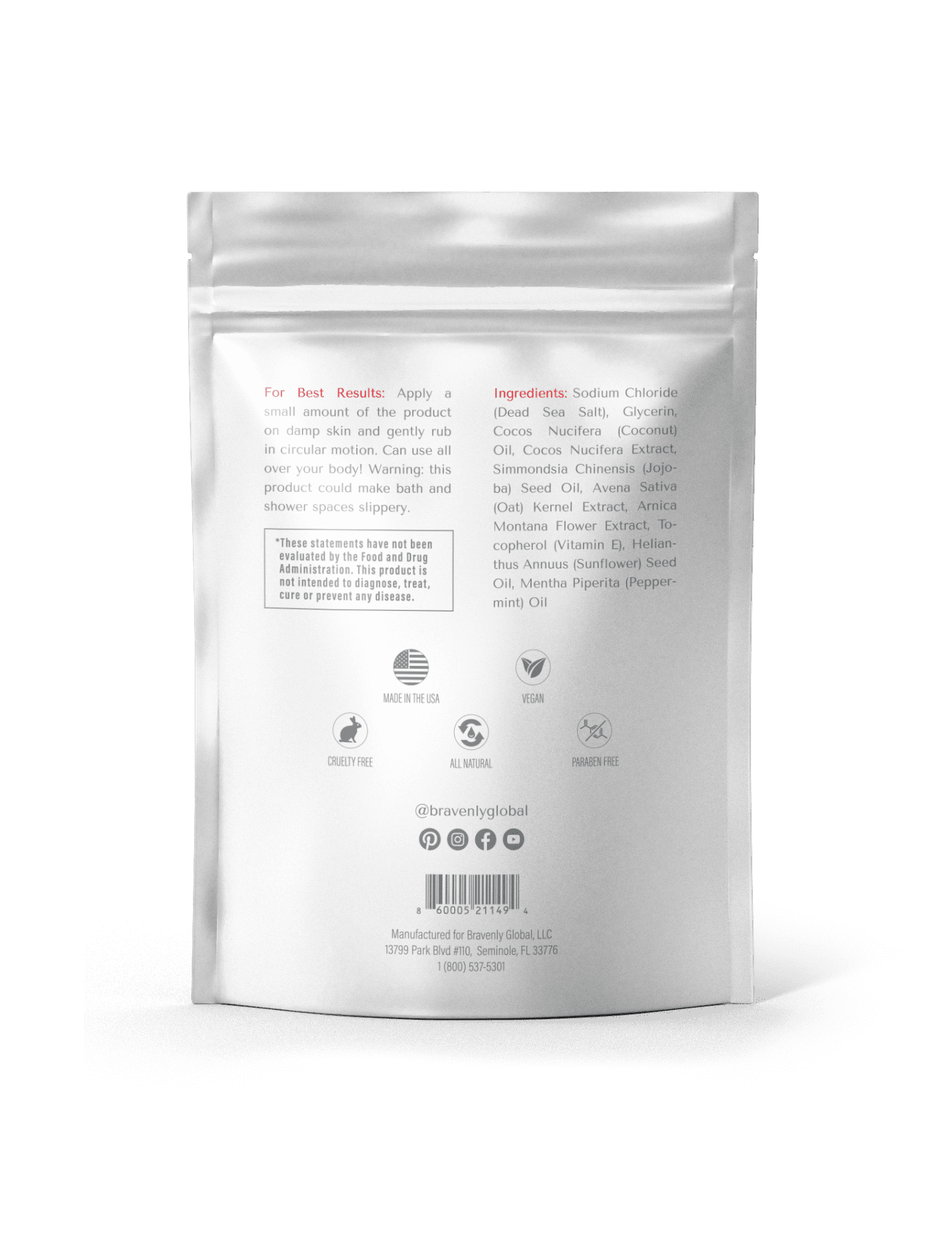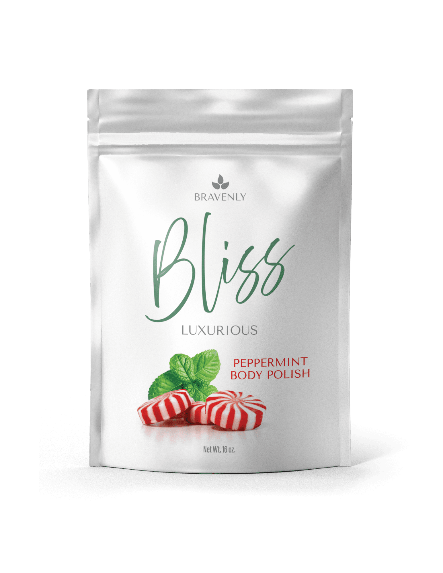 Bravenly Peppermint Bliss es un exfoliante corporal completamente natural, vegano y libre de crueldad que no contiene fragancias artificiales y está hecho en EE.UU.